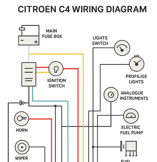 Detailed electrical diagrams for the Citroen C4. These diagrams aid in diagnosing and repairing electrical wiring, lighting systems, ignition systems, fuses, relays, sensors, and control units. Useful for auto repair shops, auto electricians, and Citroen C4 owners when troubleshooting and repairing their vehicle's electrical system. PDF Free Download